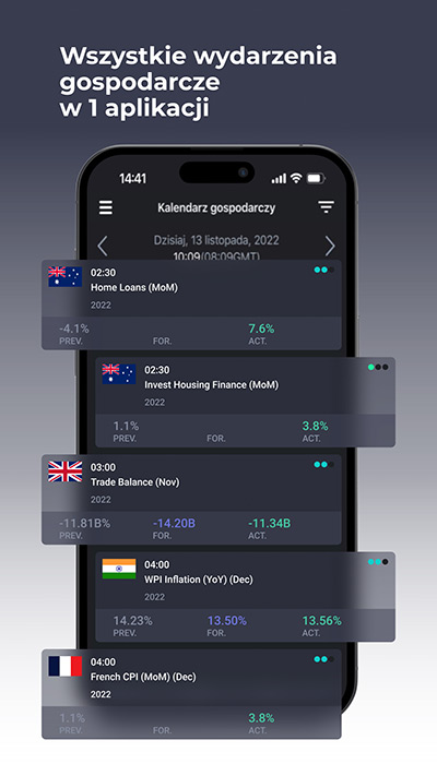 Dołącz do profesjonalnych traderów, którzy już skorzystali z naszej aplikacji. Zsynchronizuj się z rynkiem co do minuty, korzystając z kalendarza wydarzeń makroekonomicznych i bądź na bieżąco ze wszystkimi istotnymi wydarzeniami w świecie finansowym.