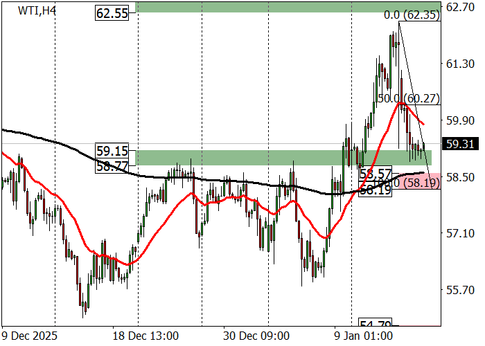 Po korekcie w rejonie 62.37 notowania ropy WTI Crude Oil zmierzają w kierunku poziomu wsparcia 58,80: na tle komentarzy prezydenta USA Donalda Trumpa na temat rosnących napięć w regionie Bliskiego Wschodu instrument stracił w tej chwili 3,5% wartości. Tak więc urzędnik zauważył, że przemoc w tłumieniu masowych protestów w Iranie zaczęła spadać, a plany przeprowadzenia masowych represji ze strony kierownictwa Republiki Islamskiej na tym etapie nie istnieją, co pozwoliło oficjalnemu Waszyngtonowi zająć pozycję oczekującą po wcześniejszych doniesieniach o gotowości do ataku na obiekty na jego terytorium. Eksperci zauważają jednak, że to oświadczenie może być jedynie taktycznym posunięciem, mającym na celu wprowadzenie w błąd oficjalnego Teheranu i uzyskanie dodatkowego czasu na koncentrację kontyngentu wojskowego w regionie. Eskalacja sytuacji doprowadzi do wzrostu premii za ryzyko, przyczyniając się do rosnącej dynamiki notowań „czarnego złota”.
