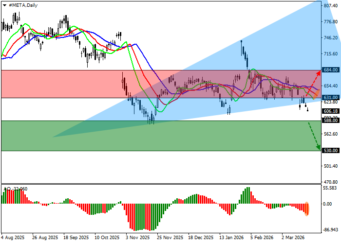 Akcje Meta Platforms Inc., amerykańskiego międzynarodowego holdingu będącego właścicielem konglomeratu technologicznego i największego portalu społecznościowego Facebook, plasują się na poziomie 606.00.